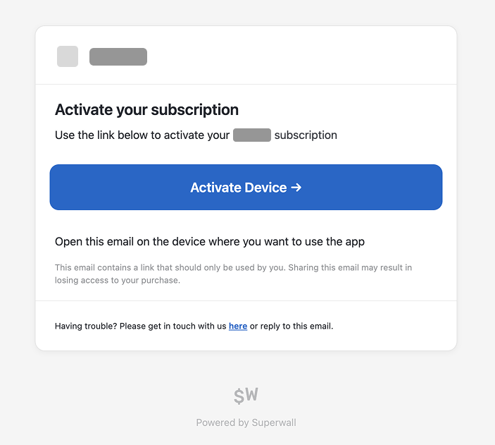 Yes. By default, Superwall emails the address used during checkout with instructions and a redemption link to activate the subscription in your iOS app. The email is sent from Your app name <support+your-app-name@superwall.app> with the subject Your activation link from your app name.